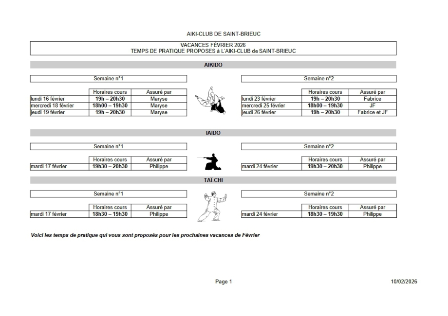 Vacances d'hiver : 14/02/2026 au 01/03/2026