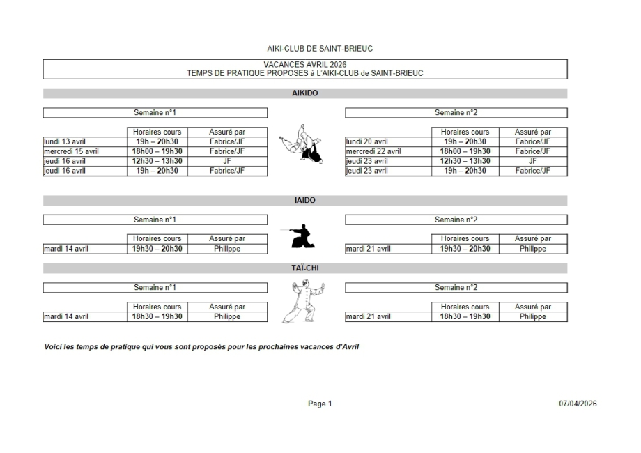 ENFANTS / ADOS - NOTE AUX PARENTS : Il n' y a pas de cours pendant les vacances scolaires
